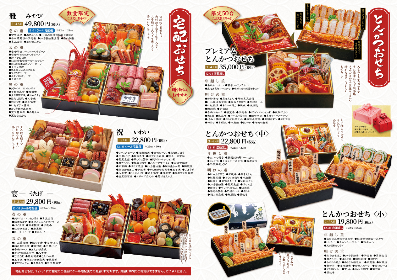 ※ ブレミアムとんかつおせち 3~4人前 35,000円 (金額はすべて税込)